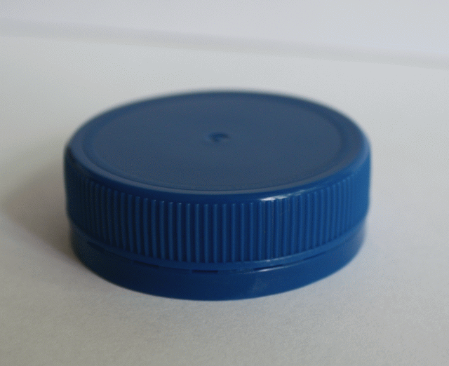 Nakrętka Ø 45mm produkowana metodą wtrysku z polietylenu wysokiej gęstości HDPE z wewnętrznym pierścieniem uszczelniającym i zabezpieczającym, który podczas odkręcania ulega zerwaniu i zostaje przy butelce.